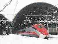 La D.445.1081, attrezzata ad intervenire anche nella neonata AV Milano - Bologna in caso di emergenza, è parcheggiata su un binario laterale di Milano Centrale. Qui mi accorgo di non essere il solo che apprezza l'evento: passano solo pochi minuti e vedo spuntare altri quattro compagni di avventura che hanno avuto la stessa idea. Entusiasti si decide di condividere insieme il fascino della città imbiancata. (Foto Guido Catasta, 07 gennaio 2009)