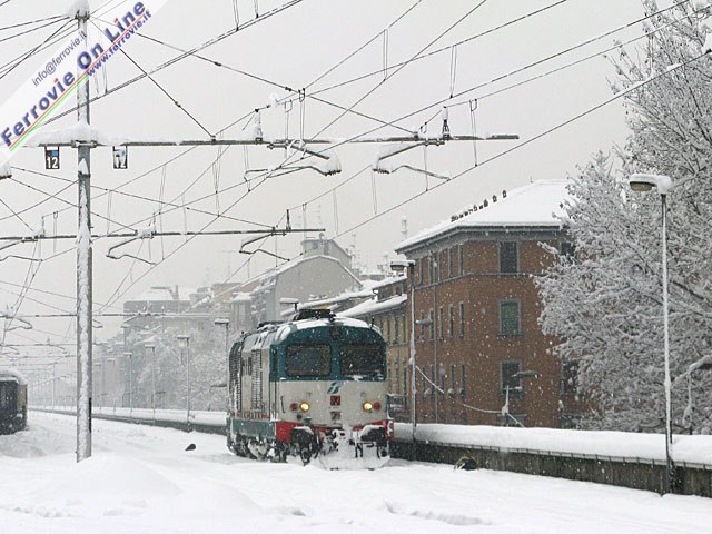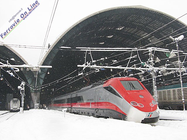 La nevicata è finita da due giorni, è tornato il sole e la D.445.1081 sta per lasciare Milano Centrale dato che l'emergenza è terminata. Alla prossima nevicata! (Foto Guido Catasta, 09 gennaio 2009)