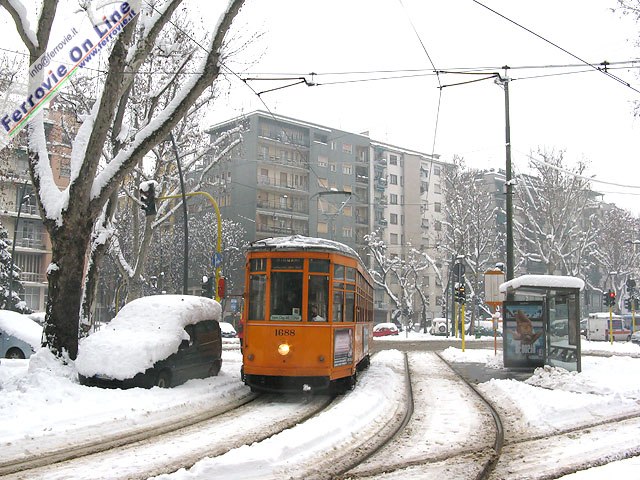 Il tram 1688 della linea 11 in Corso Sempione all'incrocio con Via Procaccini. Con la ristrutturazione delle linee avvenuta il 17 gennaio, l'11 è stato soppresso. (Foto Guido Catasta, 07 gennaio 2009)