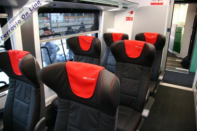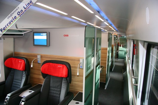 Il Railjet è suddiviso in tre classi: la Premium con 16 comode poltrone, la First Class con 76 posti ed infine l'Economy Class con 316 posti a sedere. La Premium è posizionata in testa al treno ed occupa interamente la carrozza pilota; la First Class trova posto nella seconda carrozza ed in parte della terza che condivide con il bistro, mentre l'Economy Class occupa le rimanenti quattro carrozze.