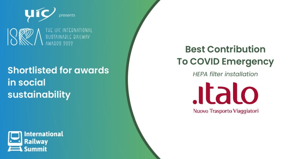 Italo ha ottenuto la nomination per la categoria Best Contribution to COVID Emergency, in virtù dell'installazione dei filtri HEPA su tutti i treni della flotta aziendale. Si contenderà il premio, a livello mondiale, con l'operatore ferroviario francese SNCF e la tedesca DB Engineering & Consulting.