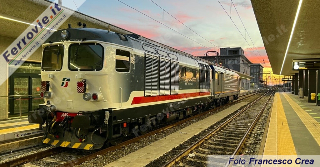 REGGIO CALABRIA - Si è concluso alle 17:30 di venerdì 4 febbraio il trasferimento della D.445.1056, la prima in livrea Intercity. Partita il 2 febbraio da Rimini (vedi News ferroviarie del 02/02/2022), la D.445 ha scavalcato gli Appennini passando per Foligno, Roma e Caserta per raggiungere il capoluogo reggino trainata dalla E.464.135.