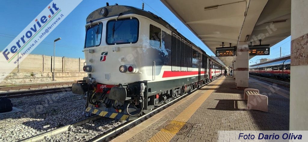 REGGIO CALABRIA - E' da poco rientrata in servizio la D.445.1056, prima unità del suo gruppo a ricevere la livrea Intercity di Trenitalia. La locomotiva, trasferita dalle OGR di Rimini a Reggio Calabria la settimana scorsa (vedi News ferroviarie del 04/02/2022), è stata impegnata dapprima in una corsa prova andata e ritorno tra il capoluogo reggino e Roccella Jonica, che si è svolta martedì 8 febbraio. Il giorno successivo, mercoledì 9 febbraio, la D.445 ha dunque effettuato la sua prima corsa commerciale nella nuova coloritura, trainando l'Intercity 564 Reggio Calabria C.le - Taranto.