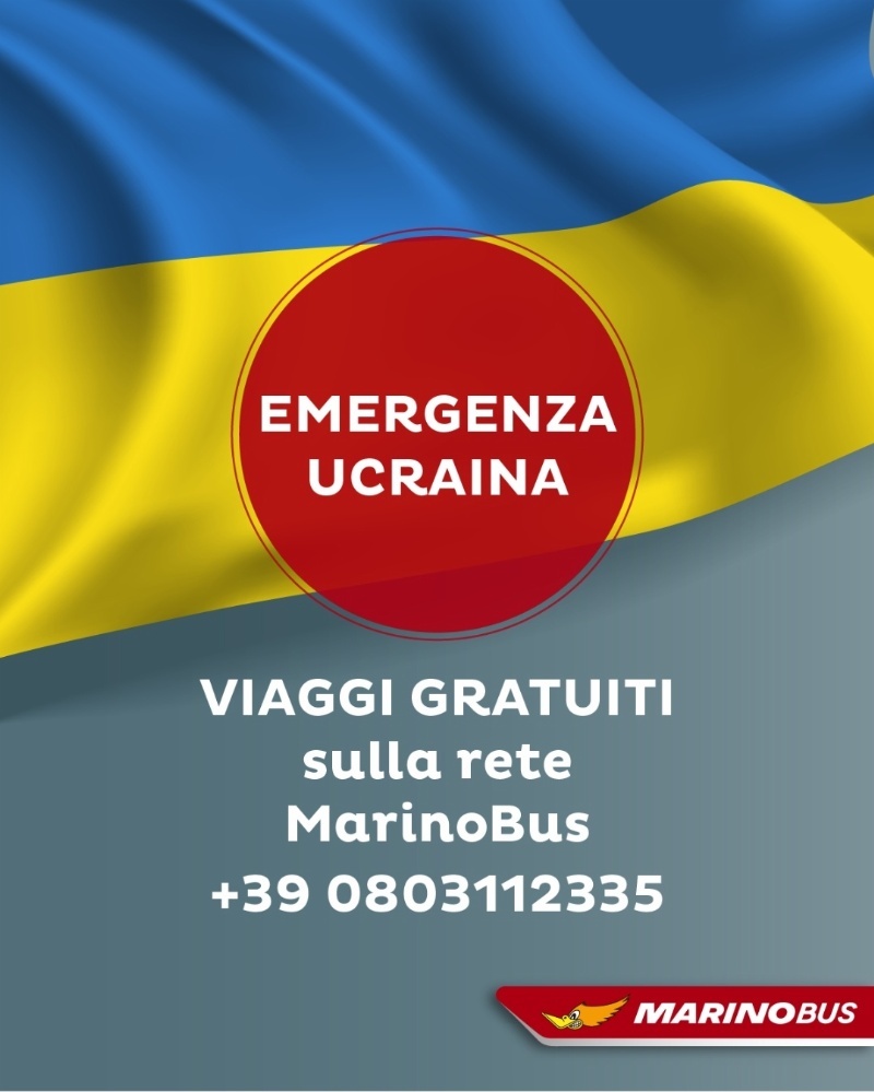 A chi è fornito di passaporto ucraino, MarinoBus offre gratuitamente la possibilità di viaggiare sui propri automezzi di linea - impiegati nelle tratte a lunga percorrenza - per riuscire a raggiungere le mete più distanti, ad esempio Puglia, Campania, Calabria e Basilicata da tutte le città del Centro-Nord Italia servite (ad es: Milano, Trieste, Trento, Udine, ecc.). Il servizio permetterà così di rendere più semplici i ricongiungimenti dei profughi con i familiari che vivono in Italia o il raggiungimento di luoghi di ospitalità sicuri.