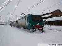 10. Sotto una fitta nevicata la E.464.033 si appresta a lasciare la stazione di Brennero alla volta di Bolzano. (Foto David Campione, 23 febbraio 2004)