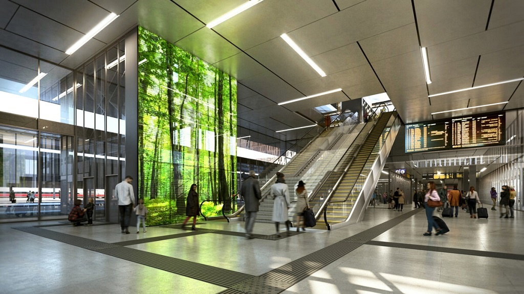Il lato est sarà invece destinato alla connettività di stazione, che garantirà l'accesso ai marciapiedi mediante ascensori, scale fisse e mobili.