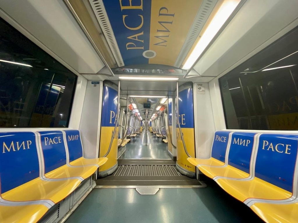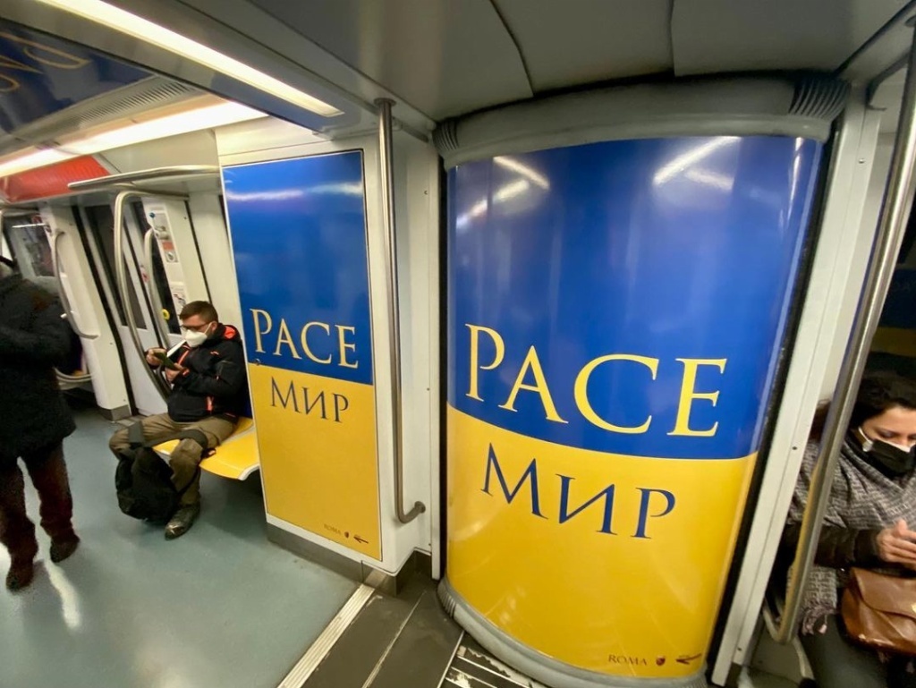 Da giovedi 3 marzo, sulla linea A della Metropolitana di Roma, viaggia un treno allestito con i colori della bandiera Ucraina e la scritta PACE, in italiano e ucraino.