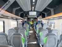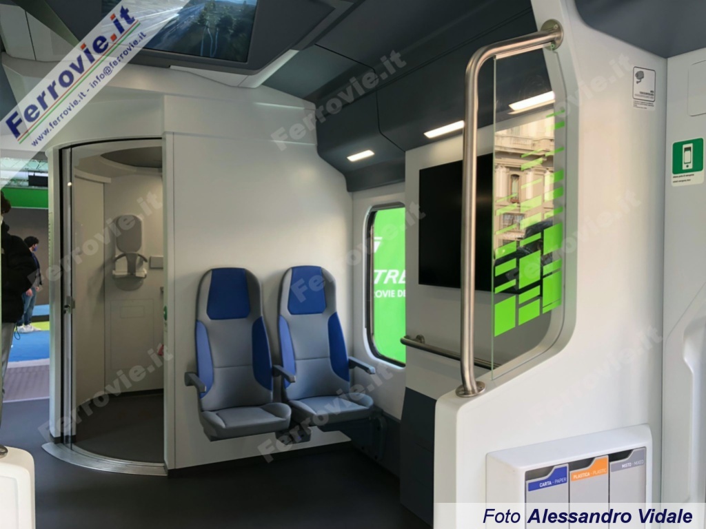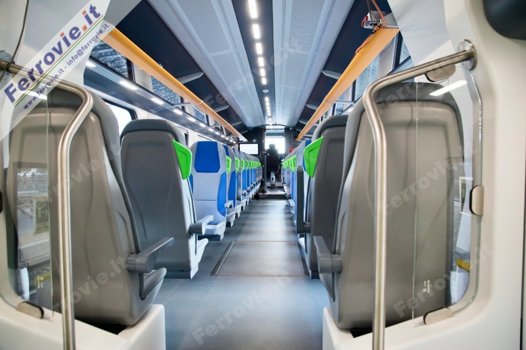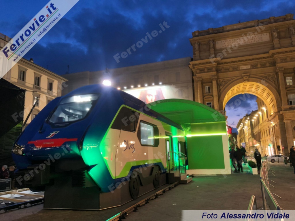 FIRENZE - Mostriamo in anteprima le primissime immagini degli interni del nuovissimo HTR.412.003 Blues di Trenitalia. Presentato oggi a Firenze alla stampa con un simulacro esposto in piazza della Repubblica e con una corsa riservata alle autorità da Firenze Castello a Prato (vedi Brevi ferroviarie del 04/03/2022), il Blues è il nuovo convoglio ibrido prodotto da Hitachi Rail per Trenitalia. I 110 convogli ordinati è previsto entreranno in servizio a partire da fine anno, inizialmente in Toscana e successivamente in Valle d'Aosta, Friuli-Venezia Giulia, Lazio, Calabria, Sicilia e Sardegna.