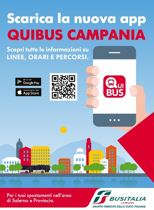 Da oggi è più semplice viaggiare sui servizi di Busitalia Campania. Nasce "QuiBus Campania", l'applicazione ufficiale di Busitalia Campania, Gruppo Ferrovie dello Stato Italiane, per muoversi con il trasporto pubblico locale a Salerno e Provincia. Scaricabile gratuitamente su Google Play e Apple Store, l'applicazione mette a disposizione un'ampia gamma di funzionalità, tra cui:
