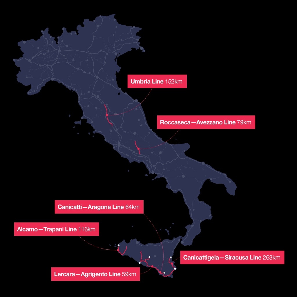 Hitachi Rail ha firmato con Rete Ferroviaria Italiana (Gruppo FS Italiane) un accordo quadro, del valore di 500 milioni di euro, per la progettazione e la realizzazione dell'ERTMS (European Rail Transport Management System) su 700 chilometri di linee ferroviarie italiane. La nuova tecnologia è il sistema più avanzato per il controllo digitale dell'operation dei treni e sarà implementata sulle linee ferroviarie in quattro regioni italiane: circa 480 chilometri di binari in Sicilia, 150 chilometri della ex Ferrovia Centrale Umbra e 80 chilometri della linea Roccasecca - Avezzano nelle regioni Lazio e Abruzzo.