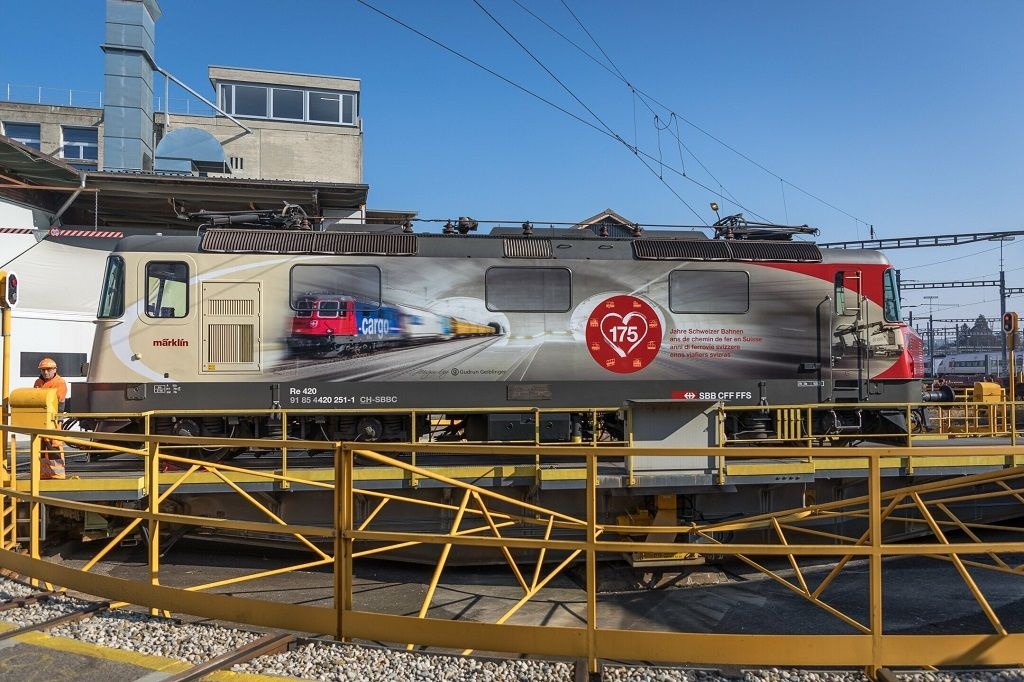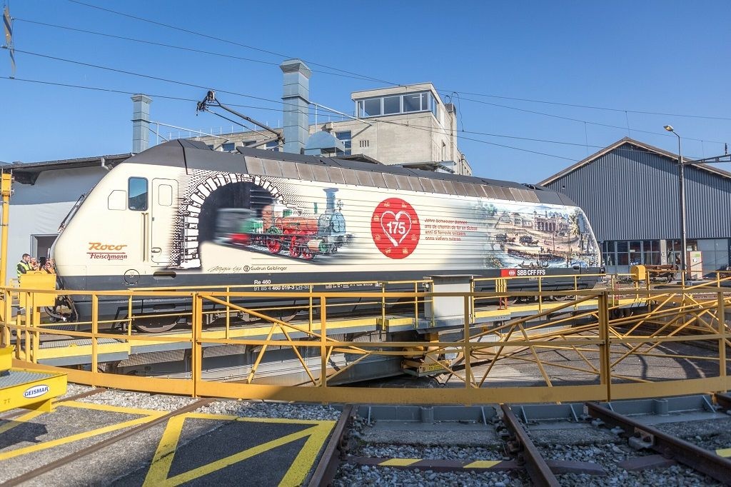 Alle officine FFS di Yverdon-les-Bains, il 9 marzo 2022 sono state presentate una locomotiva per treni merci, la Re 420 di FFS Cargo, e una locomotiva per il traffico viaggiatori, la Re 460 delle FFS, entrambe decorate a festa per l'anniversario. I costruttori di modellini ferroviari Märklin e Roco | Fleischmann sono gli sponsor dei due veicoli, su cui è raffigurato un treno storico su una fiancata e un treno di ultima generazione sull'altra. Così decorate, le due locomotive simboleggiano il legame fra passato e futuro. Saranno in circolazione durante l'anno dell'anniversario, trasportando e facendo incontrare persone e merci in tutta la Svizzera.