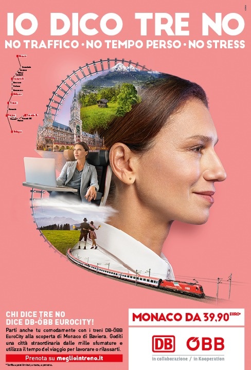 Una scelta condivisa con Marco Monaco, Responsabile Marketing e Relazioni Esterne di DB Bahn Italia: "No positivi e rafforzativi che inducono il passeggero a comprendere i vantaggi e le peculiarità di un viaggio a bordo dei nostri Eurocity, un viaggio che si trasforma in modo naturale in una piacevole esperienza sin dal primo istante".