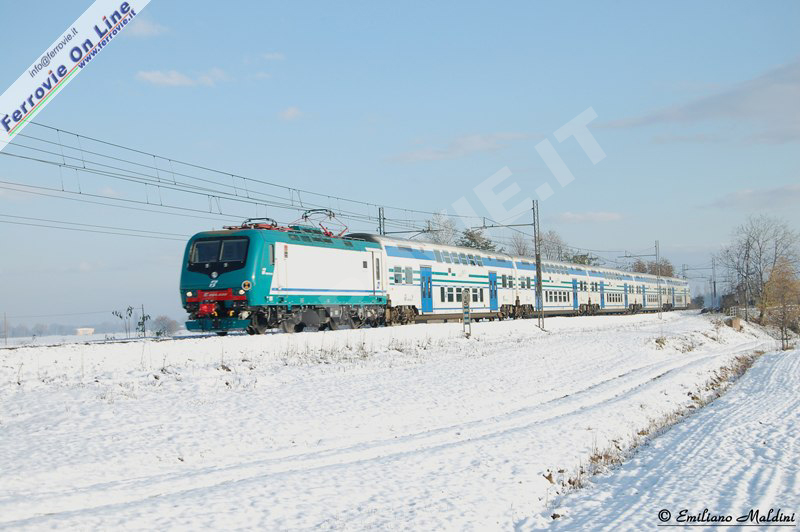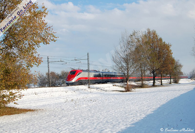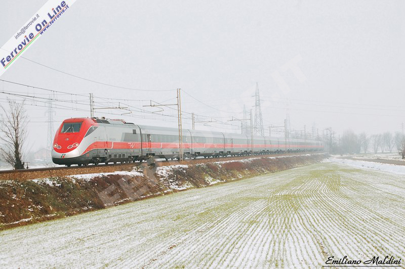 L'ETR 500 n°37 transita nei pressi di Romano, durante una corsa prova dopo una revisione effettuata presso le O.G.R. di Vicenza. (Foto Emiliano Maldini, 30 gennaio 2010)