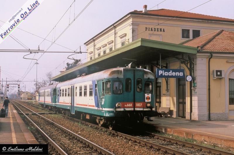 Piadena (CR) - Nella stazione di Piadena, dopo una breve fermata, due ALn 668 della serie 1800 ripartono per Parma, nel marzo 2008. (Foto Emiliano Maldini, Marzo 2008)