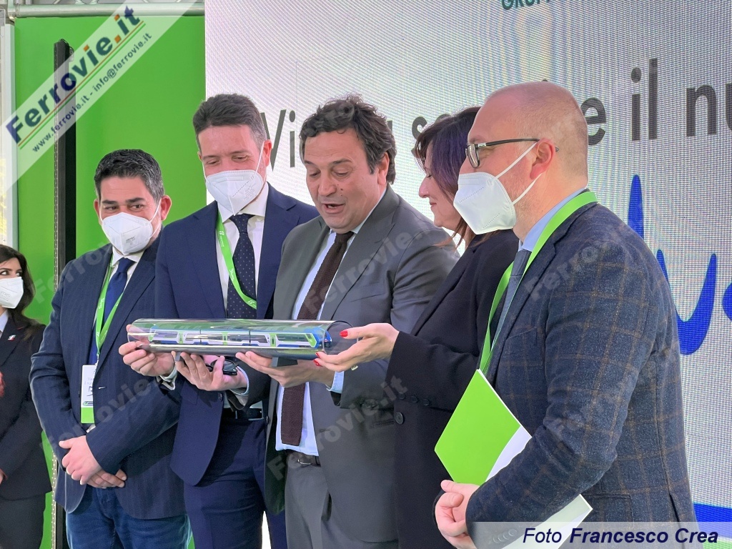 Presentato a Reggio Calabria il Blues, primo treno ibrido di Trenitalia a tripla alimentazione, elettrica, diesel e a batterie. Un treno con un'impronta green, ancora più sostenibile per il ridotto impatto ambientale e per la maggiore attenzione sociale, con la possibilità di offrire alle famiglie un'area dedicata ai bambini.