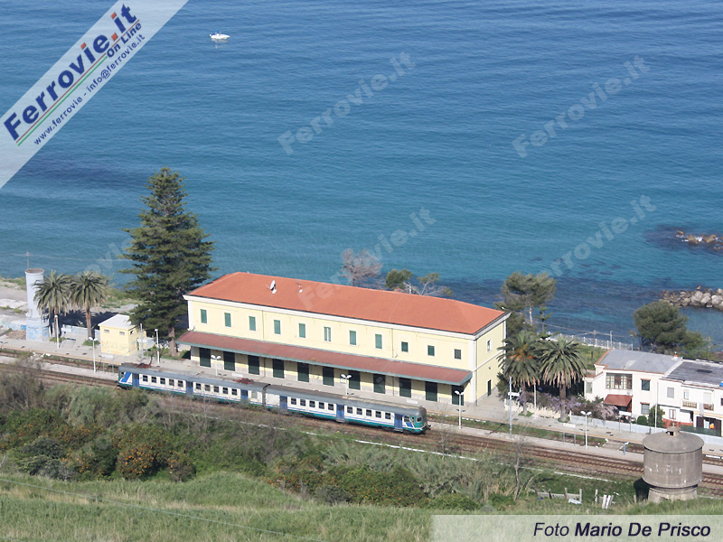 Il nostro viaggio verso nord riprende dalla Calabria, ma questa volta sul versante Jonico. Uno dei punti più panoramici è nell'alto cosentino, quando la strada ferrata sfiora il castello di Roseto Capo Spulico. Una ALn 668 in marcia verso Metaponto affronta un rallentamento dovuto ad un movimento franoso che ha interessato la zona, permettendo ai viaggiatori di apprezzare la bellezza dei luoghi. (Foto Giancarlo Scolari, 29 agosto 2007)