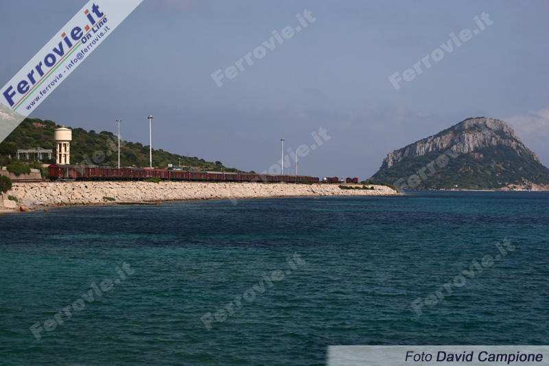 Nonostante il notevole sviluppo costiero, in Sardegna sono pochissimi i punti in cui la ferrovia lambisce il mare, complice anche la rete isolana non molto estesa. Tra questi c'e l'importante scalo di Golfo Aranci, dove terminano i binari di RFI "terrestri" per proseguire sul mare verso il Continente per mezzo delle navi di Bluvia. Oggi il servizio di traghettamento avviene sporadicamente e comunque solo quando c'è necessità di movimentare rotabili; il traffico merci da/per l'isola è nullo e la stazione di Golfo Aranci si presenta desolatamente vuota. (Foto David Campione, maggio 2005)