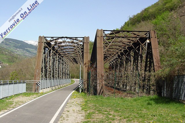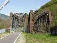 17. Tra Ponte Gardena e Campodazzo si trovano questi due ponti a travata metallica che superano il fiume Isarco. Soltanto uno dei due è stato modificato per essere percorso dalla pista ciclabile, mentre l'altro è chiuso e recintato. (Foto Fabio Veronesi, 10 aprile 2011)