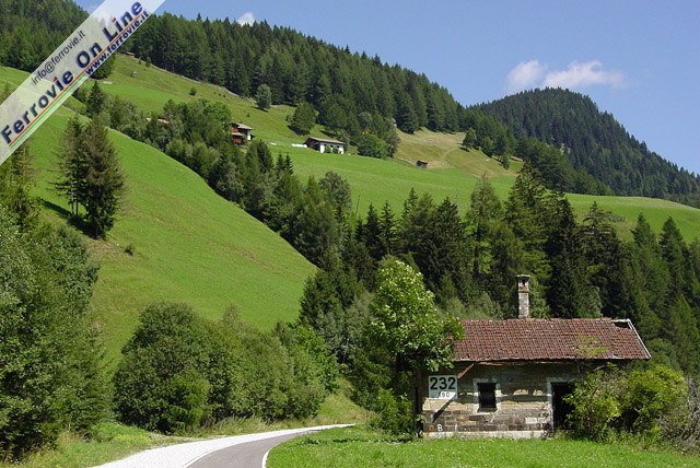 8. Al chilometro 232+190 si trova questo ex casello ormai in precarie condizioni, circondato dal rigoglioso verde estivo dell'alta Valle Isarco. (Foto Fabio Veronesi, 17 agosto 2011)
