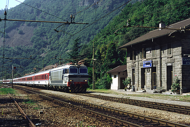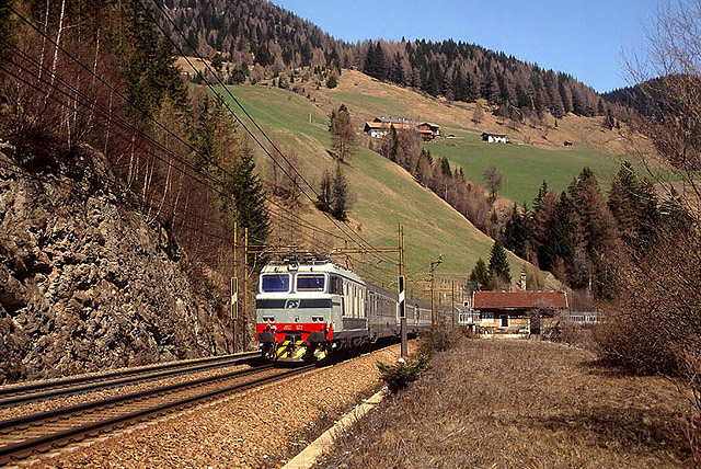 24. L'EuroCity "Paganini" Venezia S.L. - Dortmund transita da Campodazzo con in testa una onnipresente E.652. (Foto Francesco Puppini, 1994)
