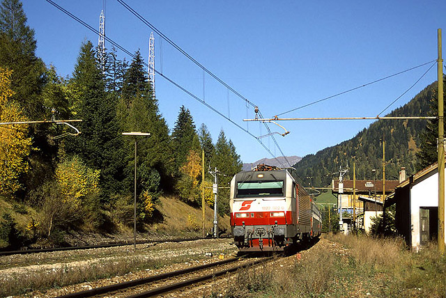 11. La stazione di Moncucco, già priva del binario di precedenza, vede in transito sul primo binario un Diretto proveniente da Innsbruck Hbf, trainato dalla 1822.002. Ancora poco più di un anno, e questo tratto di linea verrà dismesso. (Foto Stefano Paolini - www.photorail.com, settembre 1998)
