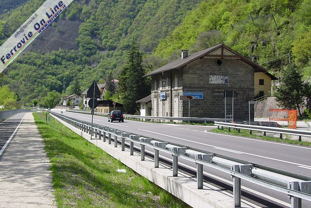 23. L'ex piazzale binari della stazione di Campodazzo è stato utilizzato per consentire il passaggio della pista ciclabile e per una variante alla SS12 che in precedenza transitava in corrispondenza del piazzale esterno della stazione. (Foto Fabio Veronesi, 10 aprile 2011)