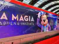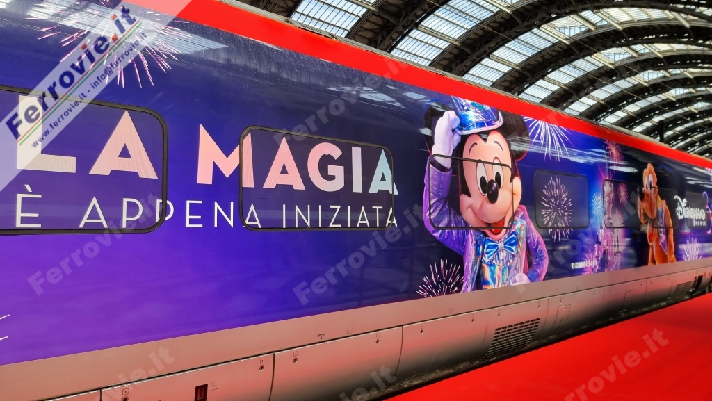 Il treno con grafica dedicata è arrivato oggi alla stazione Centrale di Milano. Presenti al taglio del nastro Pietro Diamantini Direttore Business Alta Velocità di Trenitalia, Gioacchino Costa Direttore Marketing Trenitalia, Monica Astuti, Country Head Disneyland Paris.