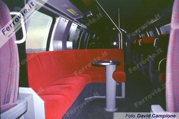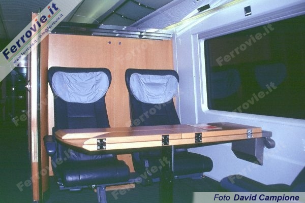 L'estremità opposta con allestimento per l'appunto di seconda classe, offre in prossimità del vestibolo uno spazio per le bici ed ancora un salottino alle spalle del macchinista.