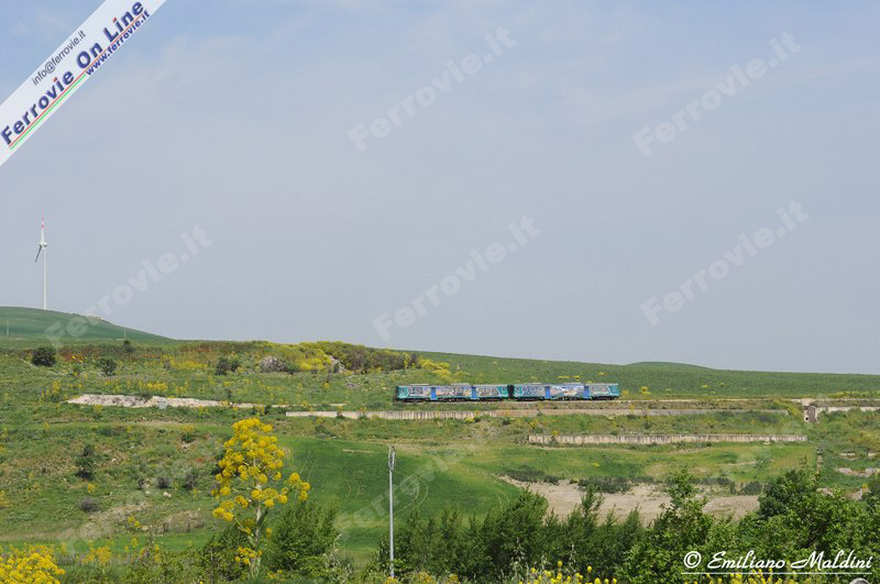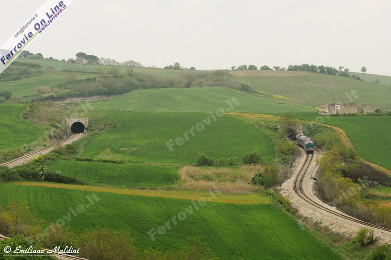 Il treno dell'immagine precedente, ripreso in partenza da Rocchetta S.Antonoio - Lacedonia. (Foto Emiliano Maldini, 22 aprile 2011)