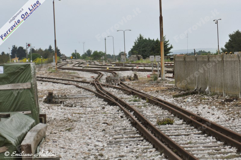 Binario a doppio scartamento con relativo deviatoio, presente nella stazione RFI di Altamura ed utilizzato, fino a pochi anni fa, per l'inoltro di carri tra le stazioni di Altamura RFI ed Altamura FAL. Con questa immagine chiudiamo così questa prima parte del nostro viaggio. (Foto Emiliano Maldini, 27 aprile 2011)