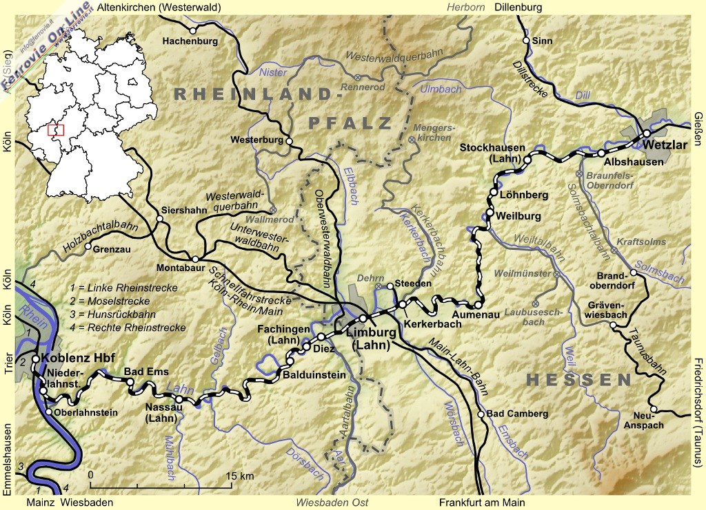 Verso Nassau la linea passa a semplice binario; questa città è la culla della dinastia Orange-Nassau, reali d'Olanda dal XVI secolo.
