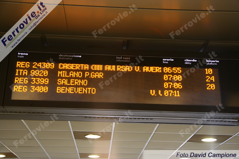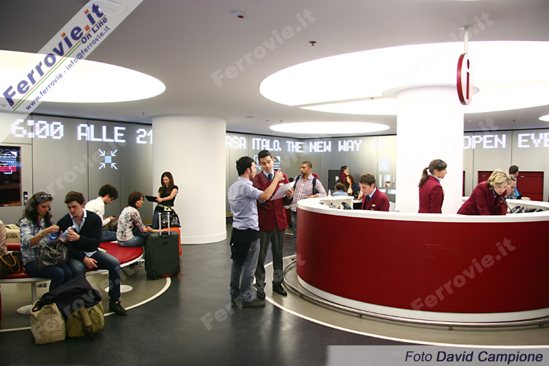 Ma torniamo a Napoli Centrale. Sono da poco passate le 6 e sui quadri orario di stazione tra i treni di FS Trenitalia e Metrocampania NordEst in partenza campeggia per la prima volta "NTV 9920 " delle 7.00 per Milano Porta Garibaldi, accompagnato dal simpatico simbolo del leprotto, icona del treno. In questi minuti sta aprendo Casa Italo ed i primi viaggiatori si affollano dietro la porta in attesa di essere accolti dal personale di terra.