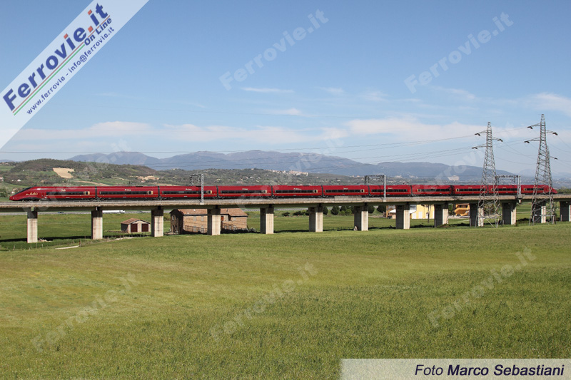 Il treno è già lanciato a 300 km/h nella campagna tra Campania e Lazio. Questa linea ad alta velocità soffre purtroppo di qualche avvallamento della sede ferroviaria, che alla massima velocità è ben percepito dal viaggiatore a bordo degli ETR.500; l'AGV mostra invece una maggiore stabilità su queste imperfezioni, che comunque rimangono distintamente percettibili.