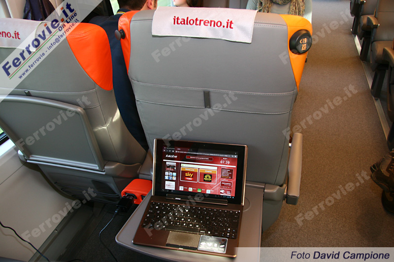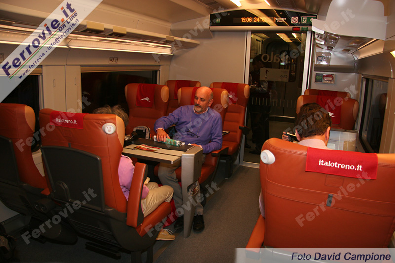 In Club troviamo un professionista proveniente da Milano e diretto a Napoli. Ci dice di preferire di gran lunga il treno all'aereo perché consente di lavorare in tutta tranquillità ed ottimizzare i tempi dello spostamento, Ritiene molto confortevole Italo ed in particolare la Club, ma non disdegnerebbe la possibilità di avere maggiore privacy senza però ricorrere al salottino. Oggi viaggia con NTV in quanto curioso di toccare con mano i servizi di Italo per confrontarli con quelli del Frecciarossa che comunque ritiene molto buoni. Lo lasciamo al suo lavoro, mentre impegniamo a 30 km/h gli scambi di Firenze Santa Maria Novella.