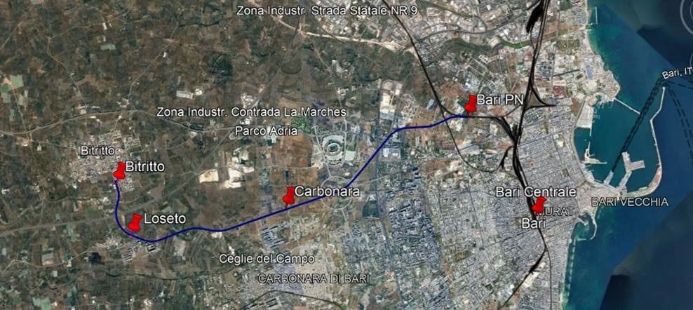 Partono oggi (13 maggio) i lavori di Rete Ferroviaria Italiana (Gruppo FS) per l'adeguamento della linea Bari - Bitritto, gestita fino allo scorso anno da un altro operatore ferroviario e divenuta poi di proprietà di RFI (vedi Brevi ferroviarie del 14/06/2021).