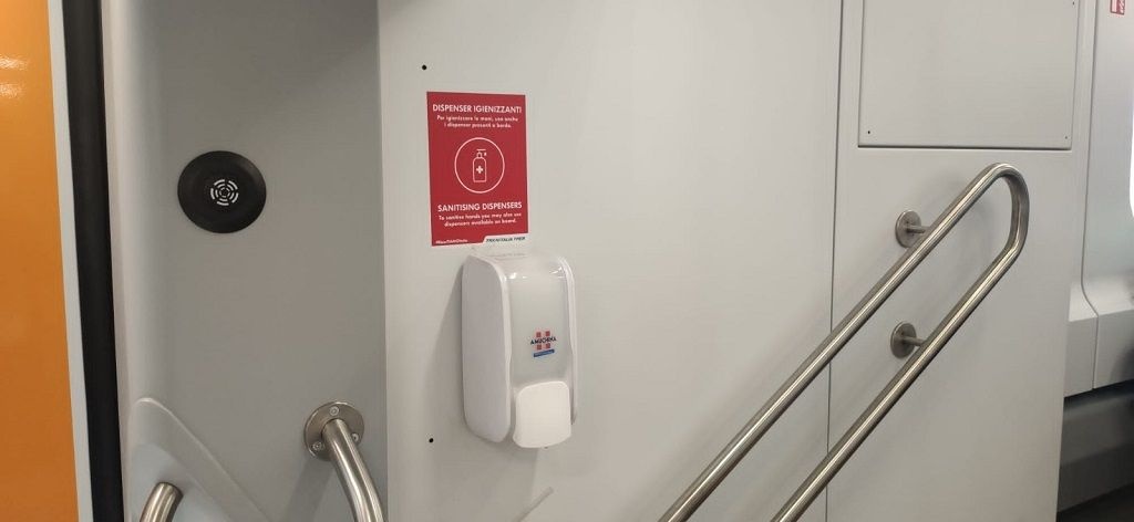 Amuchina Gel XGerm sale a bordo dei 208 treni regionali di Trenitalia Tper, che garantiscono 890 collegamenti giornalieri in tutta l'Emilia-Romagna con estensioni in Lombardia, Liguria, Piemonte e Marche.