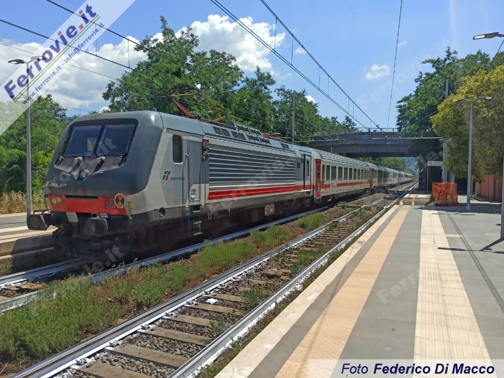 La nuova composizione, che viaggia accoppiata da Roma Termini a Villa San Giovanni e viceversa, prevede il taglio dei due treni nello scalo calabrese e il successivo imbarco sulla nave traghetto (a cura di locomotive Diesel da manovra di RFI) delle due sezioni complete di locomotive E.464.