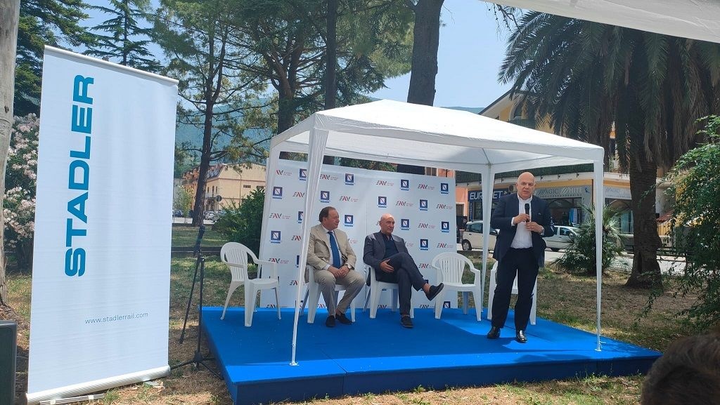 Alla manifestazione di presentazione, presieduta dall'Ing. Pasquale Sposito, Direttore Operativo Centrale di EAV, sono intervenuti l'Ing. Maurizio Oberti, Direttore Marketing & Sales di Stadler, e l'On. Gennaro Oliviero, Presidente del Consiglio Regionale della Campania.
