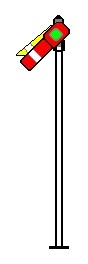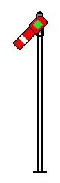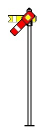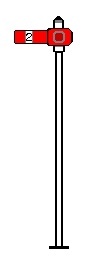 Ad evoluzione avanzata del segnalamento semaforico e poco prima dell'avvento di quello luminoso, farà la sua comparsa l'indicatore di direzione: nella foto, abbiamo un'ala che può disporsi a via libera, quindi, è accompagnata da uno dei quattro numeri illuminati.