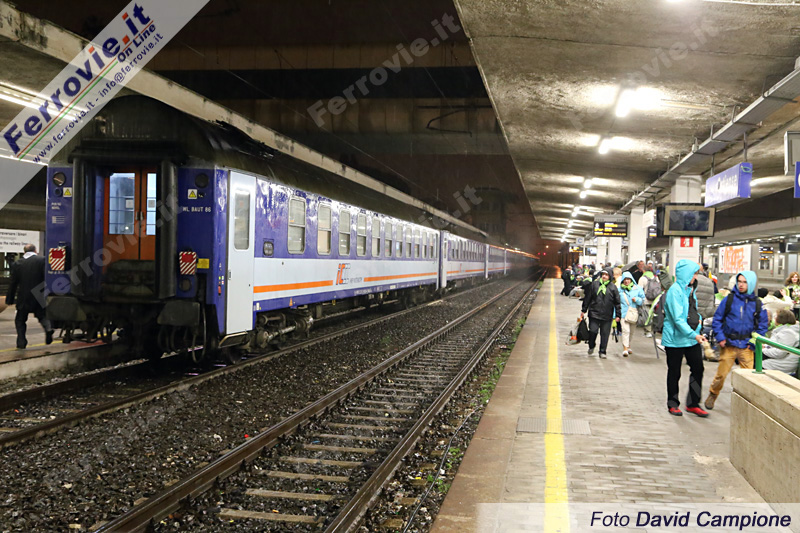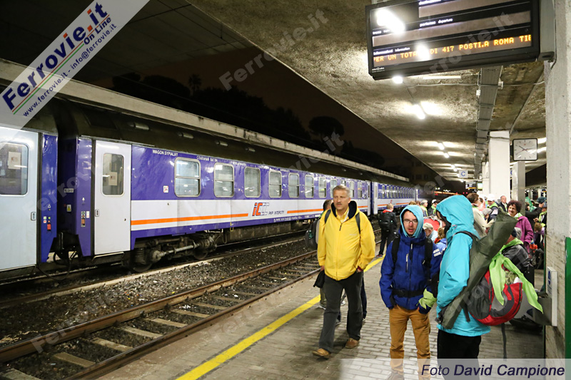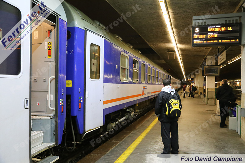 Il primo Espresso per Varsavia ha lasciato Roma alle 23.10, viaggiando verso Firenze, Bologna, Mestre e Tarvisio. (Foto David Campione, 27 aprile 2014)