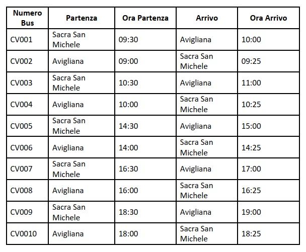 Qui il dettaglio dell'offerta degli autobus in funzione dell'apertura dell'Abbazia:
