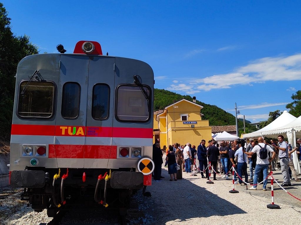 Di nuovo il suono di un treno in movimento nel cuore dell'Abruzzo. Dopo 18 anni. La storica stazione ferroviaria di Villa Santa Maria che accoglie un convoglio ALn 776 bicabina della TUA, partito dalla stazione di Archi, con tanto di applausi dei presenti a sottolineare l'eccezionalità dell'evento.