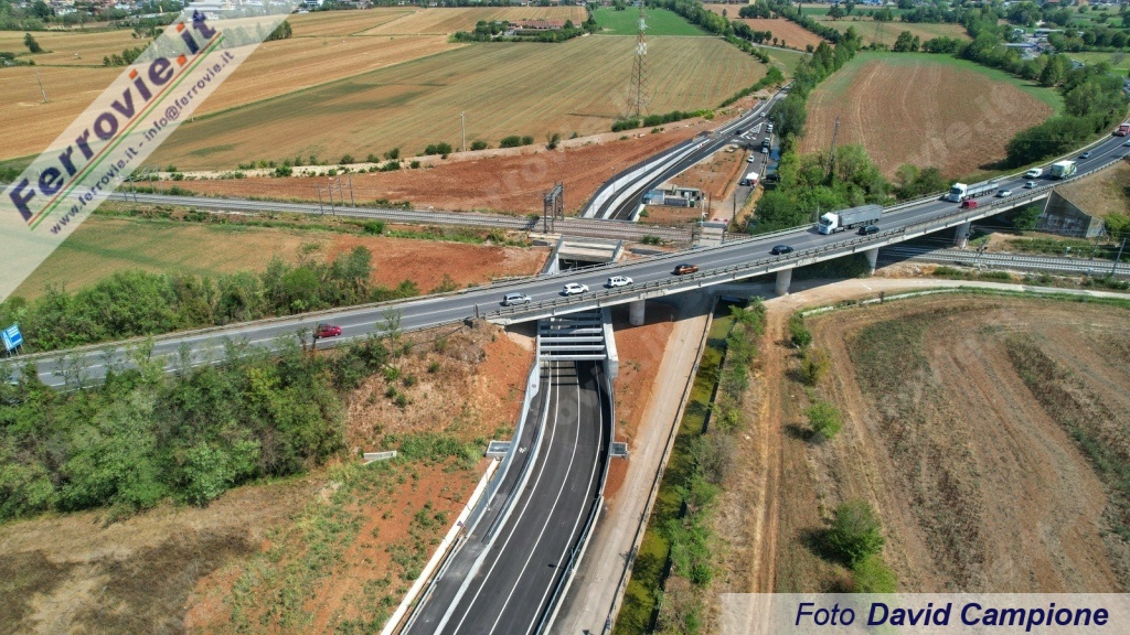 2. La foto aerea mette in evidenza il percorso seguito dalla Strada Provinciale 67 per sottopassare la Gardesana occidentale e la ferrovia. (Foto David Campione, 03 agosto 2022)