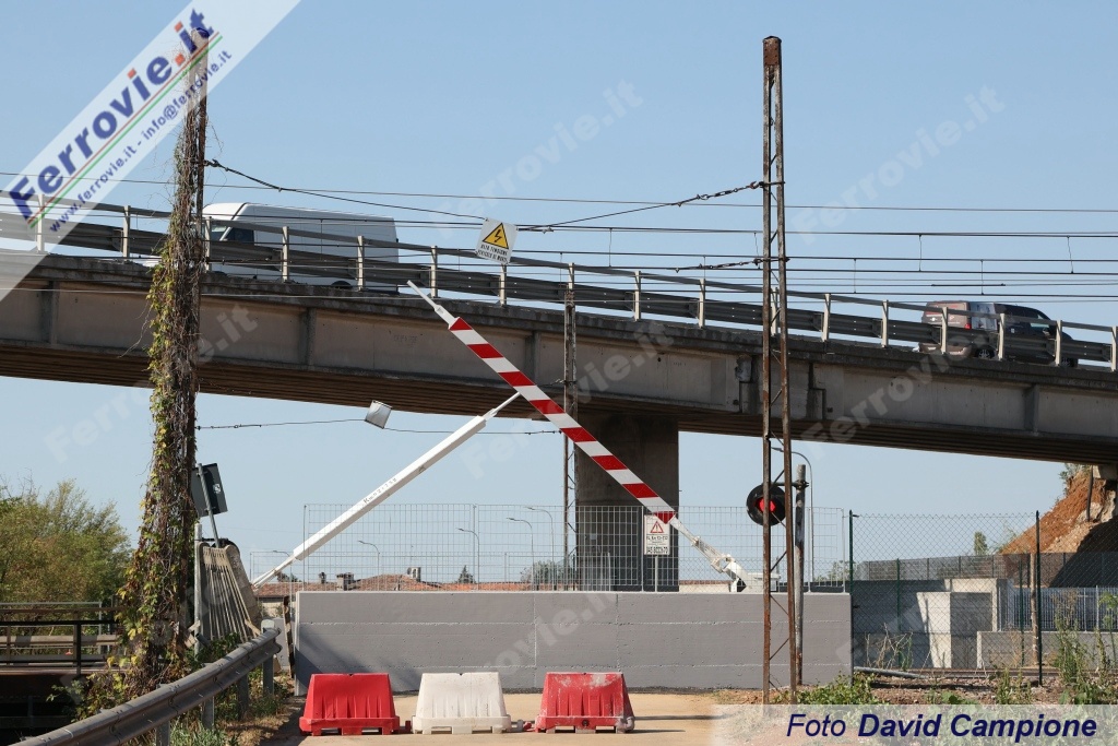 1. Il nuovo sottopassaggio di Rezzato della SP67 che sostituisce il passaggio a livello visibile sulla sinistra (chiuso da barriere in cemento), l'ultimo esistente sulla linea ferroviaria Milano - Venezia. (Foto David Campione, 03 agosto 2022)