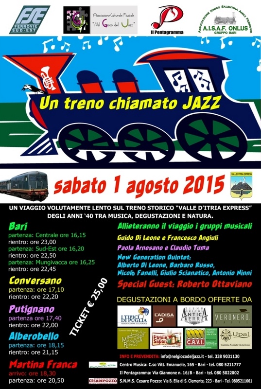 Viaggerà sabato 1° agosto 2015 da Bari a Martina Franca e ritorno "Un treno chiamato Jazz", con a bordo del convoglio musica dal vivo a tema con la partecipazione di Roberto Ottaviano ed altri gruppi musicali. Durante il viaggio saranno servite degustazioni offerte dagli sponsor.