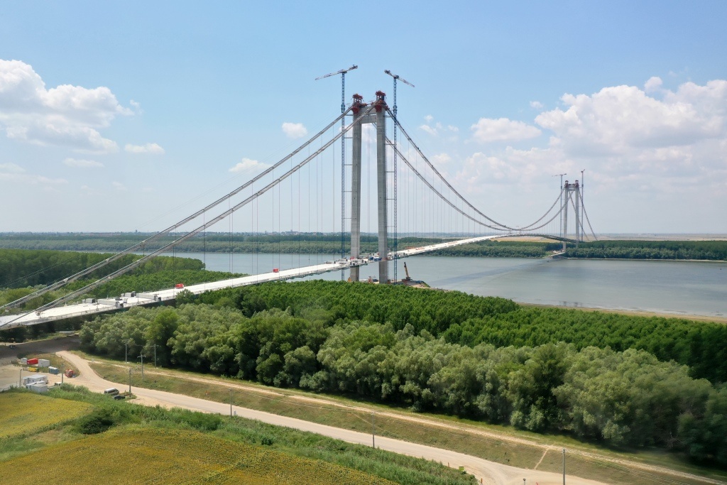 Un'opera di grande complessità che in estate ha completato il montaggio dell'impalcato in acciaio del ponte, una delle fasi più sfidanti dell'opera. Oltre 250 operai e tecnici specializzati sono stati impegnati per installare gli 86 segmenti che compongono il cosiddetto "steel deck", di peso medio pari a 260 tonnellate ciascuno, per il cui montaggio è stata studiata una specifica modalità di varo e posa in opera. Una lavorazione complessa, oltre che scenografica: dalla riva, mediante una speciale trave di varo, i singoli segmenti sono stati fatti scorrere su apposite chiatte che, dopo aver navigato per circa 7 chilometri lungo il Danubio, dalla vicina fabbrica di produzione a Braila fino al ponte, uno alla volta sono stati issati su in quota e agganciati ai suoi tiranti.