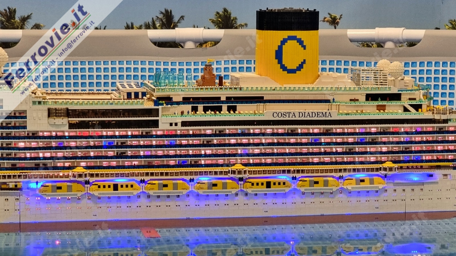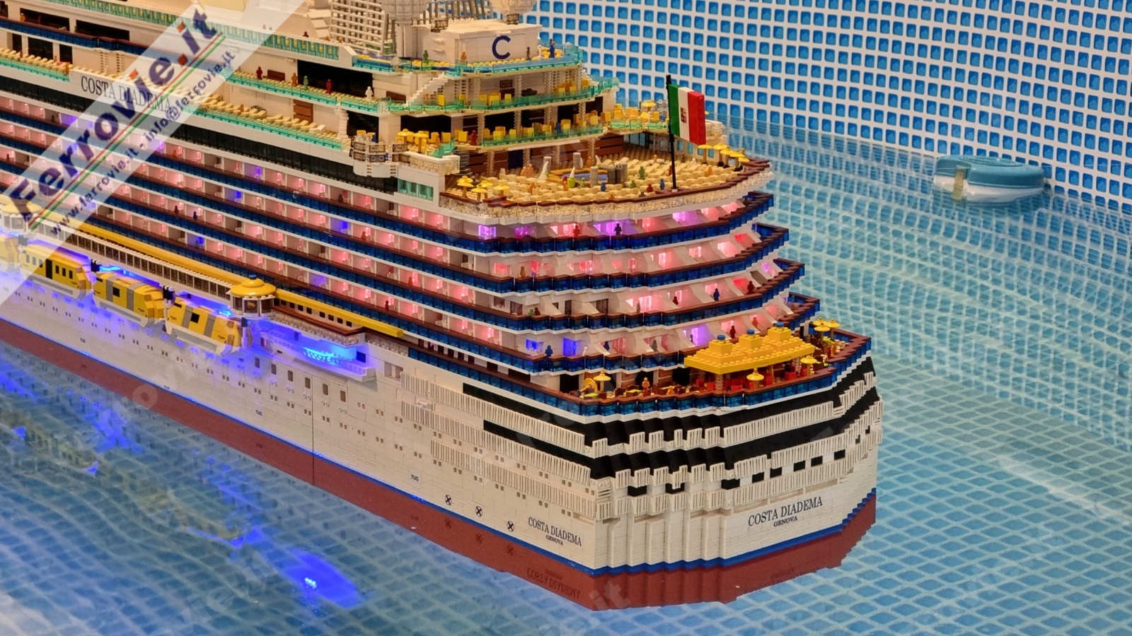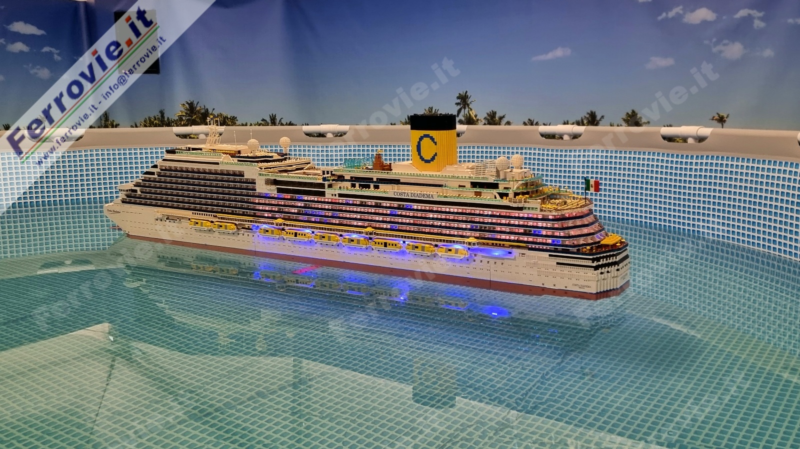 BERGAMO - Oltre 200.000 mattoncini Lego per un peso totale di 180 chili, 306 centimetri di lunghezza e 94 di altezza. Sono i numeri della meravigliosa riproduzione della nave da crociera Costa Diadema, realizzata da Pierluigi Alberto Cervati e dalla moglie Beatrice Da Ros, scomparsa nel novembre 2021, con comuni mattoncini Lego.