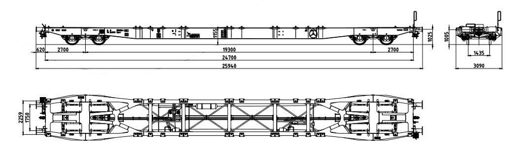 Atto a circolare sino alla velocità di 120 km/h, il carro è caratterizzato da un peso complessivo di 90 tonnellate (peso assiale 22,5 t), carrelli di tipo Y25Ls e capacità di iscrizione in curva sino a 90 metri di raggio.