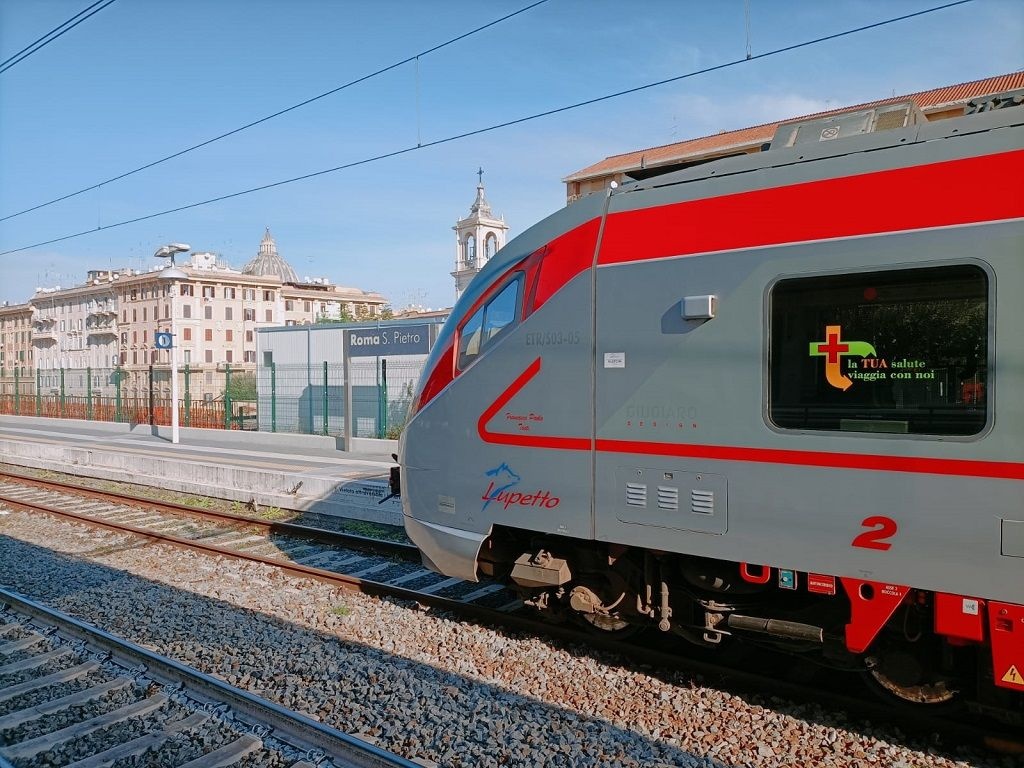 Un "Lupetto" Alstom della TUA è arrivato questa mattina (13 novembre) alle ore 10:10 nella stazione ferroviaria di Roma San Pietro, l'infrastruttura che dista pochi metri da Città del Vaticano.