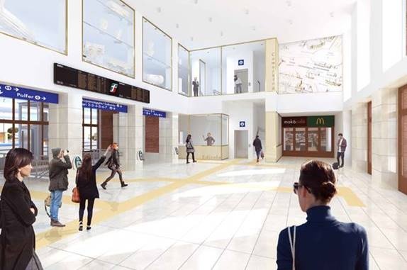Ma è l'apertura al pubblico del primo piano della stazione la novità architettonica più importante. I collegamenti verticali con il piano terra, ora nascosti e inaccessibili al pubblico, sono stati ripensati per essere totalmente a vista e posizionati nell'atrio di stazione. Saranno realizzati una scala e un ascensore e l'integrazione del primo piano nella spazialità dell'atrio avverrà con la creazione di ampie vetrate in sostituzione delle pareti affacciate sull'atrio, in modo da consentire una fruibilità prima di tutto visiva fra i due livelli.